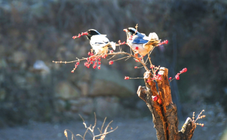 陽泉市開展的水系改善、濕地開發(fā)保護(hù)等工程,為各類鳥兒提供了良好的生存環(huán)境,現(xiàn)有各種鳥類130余種。圖為憩于枝頭的紅嘴藍(lán)鵲。