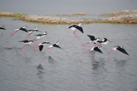 忻州市有“沿黃、汾河、滹沱河”等重要“鳥道”,圖為展翅翱翔的黑翅長腳鷸。