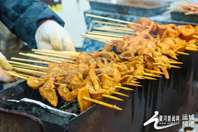 人氣旺的不僅是文化園廣場,在文化園的小吃街,有三十多家美食攤位吸引游客前來打卡、品美食。炸油糕、烤面筋、糖葫蘆等黃河金三角特色小吃數(shù)不勝數(shù),每一個攤位前都擠滿了游客。“這里不僅可以品美食,還可以購買平陸本地特產(chǎn),比在老家趕集還熱鬧?!眮碜院幽系膹埾壬蛴浾弑硎尽S慰蛡兇┧笤诟鱾€攤位間,挑選心儀的美食,匯聚起濃濃煙火味,滿足了群眾的“舌尖之歡”。