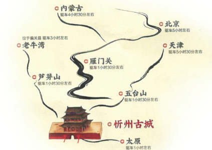 來到這里,你可以站在溝壑縱橫、梁峁起伏的黃土高原,欣賞懸崖峭立、水石相激的晉陜峽谷,也可以在古木參天、濃蔭蔽日的森林公園里散步,在百草茂盛、一望無垠的高山草甸上仰望星空。你可以游覽世界文化景觀遺產(chǎn)、佛教名山的五臺山,也可以領(lǐng)略秀容、岢嵐、寧化、代州4座悠遠(yuǎn)古城的各有千秋,登攀三關(guān)營堡、歷朝歷代的邊塞長城。你可以在偏關(guān)老牛灣古渡、河曲西口古渡搖櫓渡河,回想晉商的輝煌,也可以身臨夜襲陽明堡飛機場遺址,重溫榮耀,感受歷史的震撼……