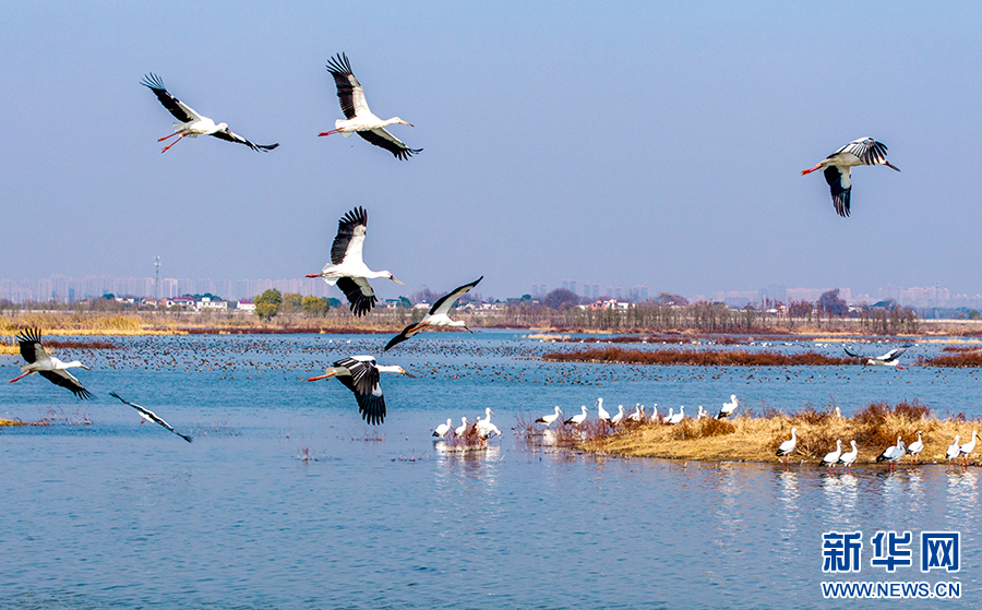 近年來,廬江縣加大黃陂湖濕地保護力度,4萬多畝的濕地環(huán)境得到較大改善。每年冬季,東方白鸛、白鶴等大量珍稀候鳥都按時來此過冬,萬鳥齊飛的壯觀場面已經(jīng)成為廬江縣黃陂湖濕地最靚麗的風景。新華網(wǎng)發(fā)(左學長 攝)