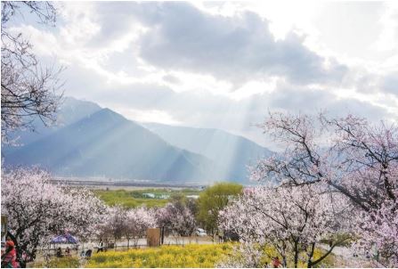 西藏林芝市被譽為“雪域江南”。近日,隨著天氣回暖,桃花競相盛開,吸引眾多游客前來賞花,感受春天的氣息。圖為3月29日在西藏林芝嘎拉村拍攝的春日景色。
