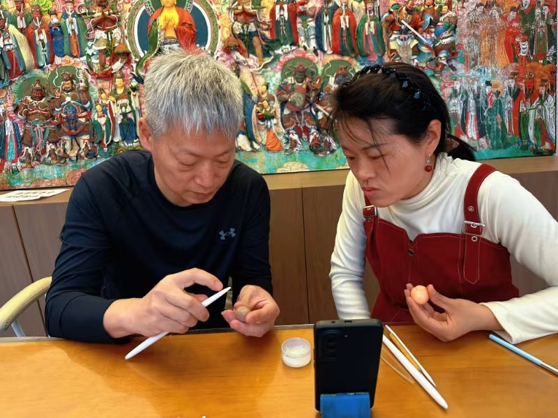 “在這條街上,聚集了很多和我一樣的手藝人?!贝蠛C嫠芩诘年P(guān)帝廟北巷文創(chuàng)街上,一家家非遺店鋪林立——葫蘆烙畫店鋪內(nèi),忻州市忻府區(qū)葫蘆烙畫非物質(zhì)文化遺產(chǎn)代表性傳承人李云珍正手拿烙鐵在葫蘆上創(chuàng)作《八駿圖》;“草木染”非遺體驗(yàn)店里,有游客在體驗(yàn)扎染的樂趣;鋦藝?yán)铮慰蛧谛弥菔行酶畢^(qū)鋦瓷藝術(shù)非物質(zhì)文化遺產(chǎn)代表性傳承人王克劍身邊,看一件破碎的瓷器如何經(jīng)過他的雙手重生……