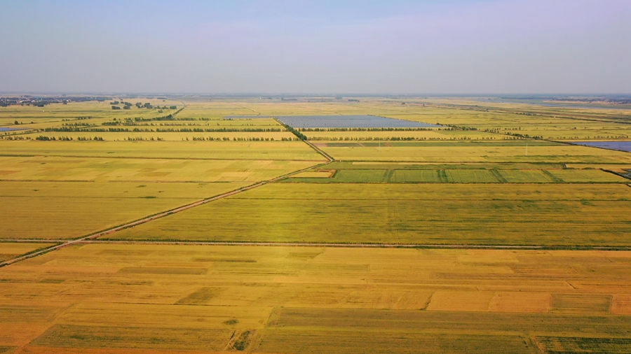 初夏時節(jié),安徽省潁上縣廣袤大地上麥香四溢。麥田在陽光下泛著金黃,麥浪滾滾,收獲在望。麥田、村落、河流、阡陌構(gòu)成一幅美麗的田園風光。?
