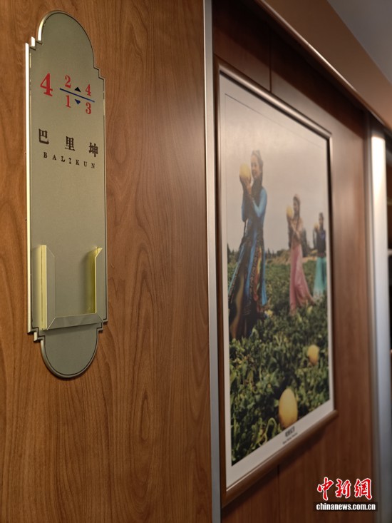 穿行在車廂中間,處處可見(jiàn)新疆的濃濃風(fēng)情。秉持“一車一風(fēng)景”的理念,車廂內(nèi)每個(gè)房間均以新疆知名景區(qū)命名,房間門口還張貼著對(duì)應(yīng)景點(diǎn)的美食美景海報(bào),讓游客未至景區(qū),先浸風(fēng)情。