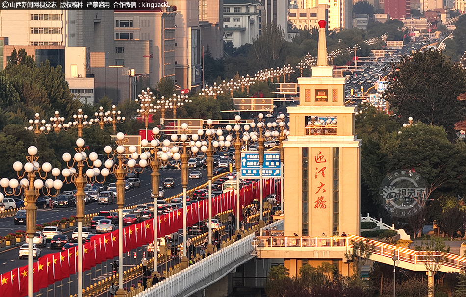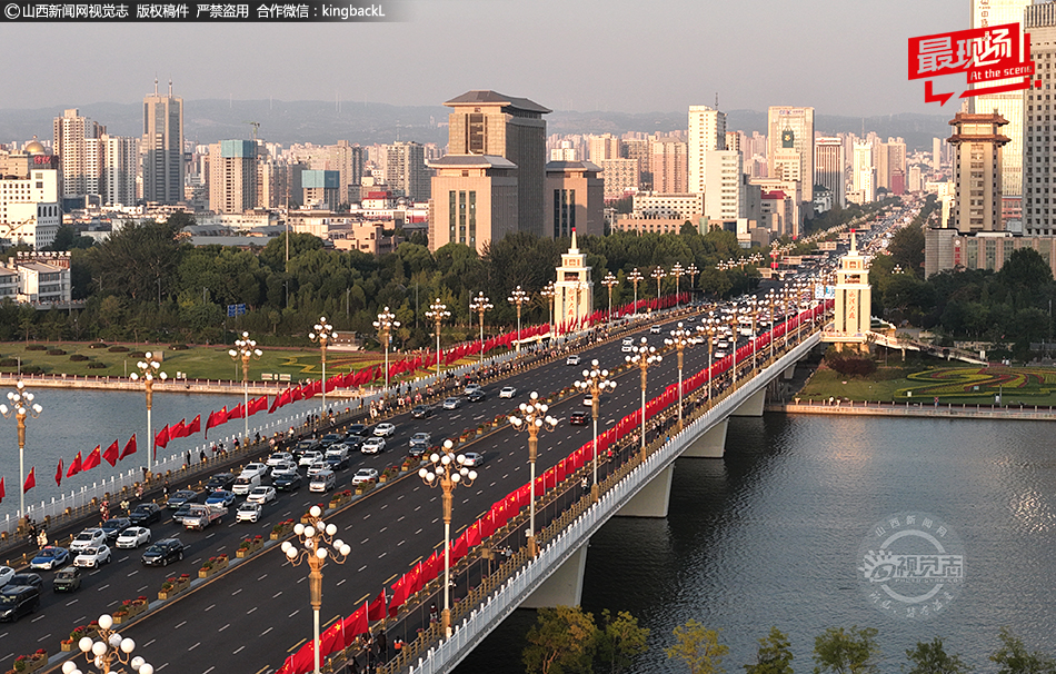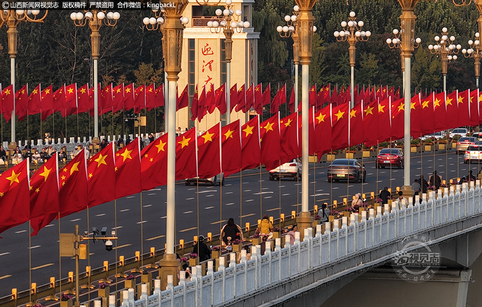 山西太原:迎澤橋 “中國(guó)紅”引打卡 國(guó)慶氛圍拉滿(mǎn)