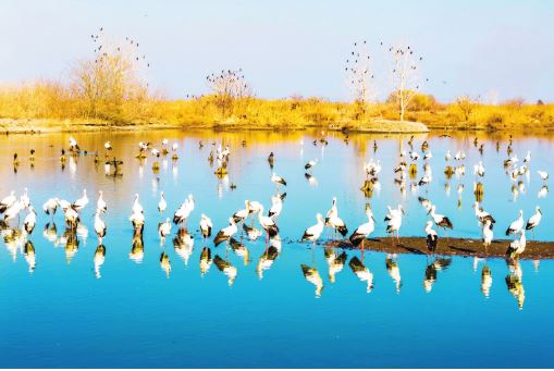 1月10日,鳥(niǎo)兒在江蘇興化里下河國(guó)家濕地公園內(nèi)棲息、覓食。新華社發(fā) 周社根攝