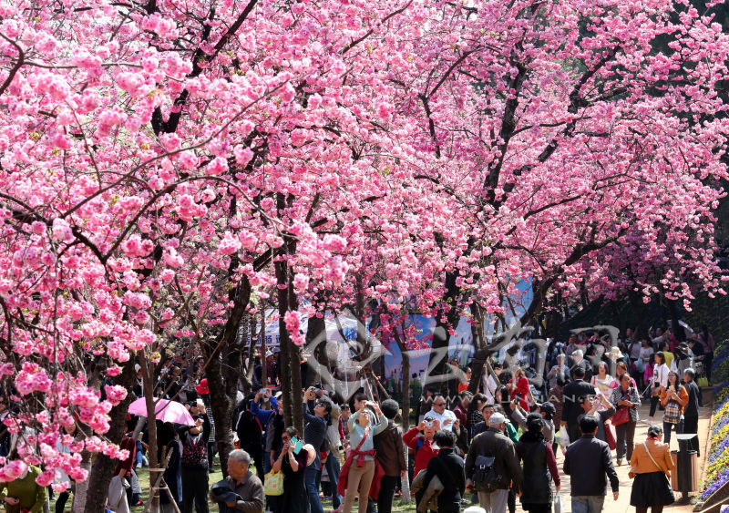 3月13日,昆明圓通動(dòng)物園人潮涌動(dòng),數(shù)千株櫻花和海棠進(jìn)入盛花期,吸引大批游客前來賞花觀景。