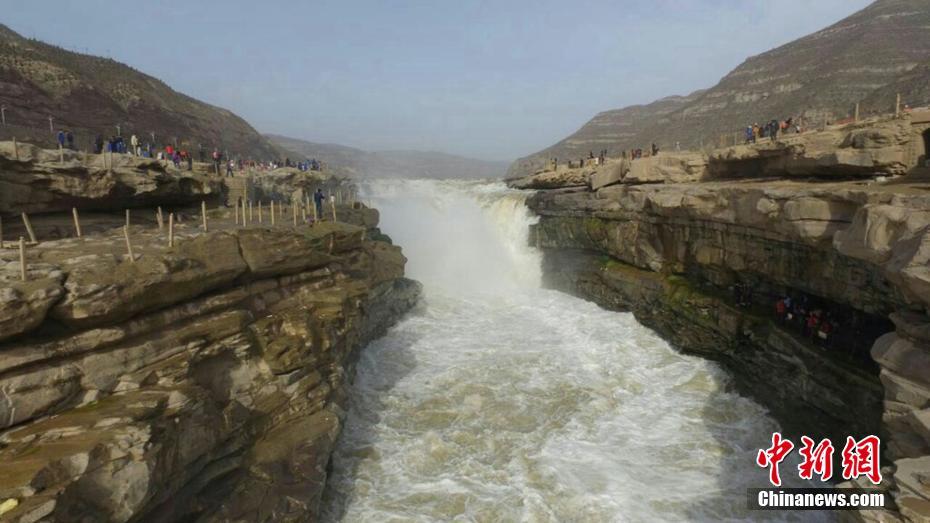壺口瀑布是中國第二大瀑布,是世界上最大的黃色瀑布。記者20日看到,飛舞的瀑布和河水蕩起浪花,一道彩虹掛在瀑布騰起的飛霧里,讓冬日的壺口多了色彩。 高慶國 攝