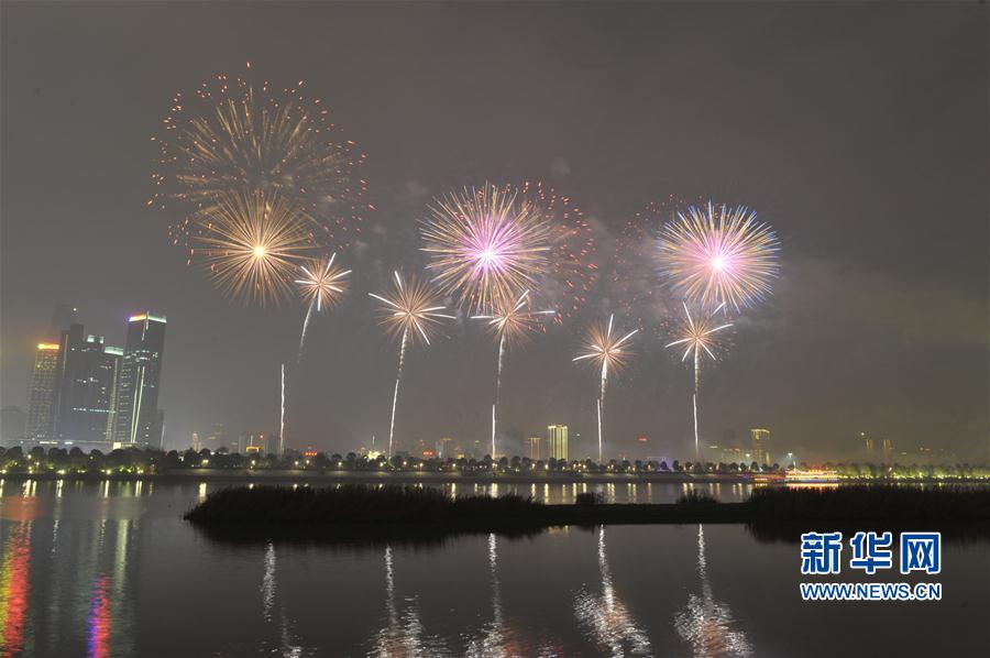 2017年1月1日夜晚,長(zhǎng)沙橘子洲附近湘江上空綻放絢麗焰火。當(dāng)晚,湖南長(zhǎng)沙橘子洲舉行焰火晚會(huì)慶祝新年到來。整場(chǎng)焰火晚會(huì)主題為“多彩星城、魅力長(zhǎng)沙”,焰火燃放時(shí)間約20分鐘。 新華社記者 龍弘濤攝