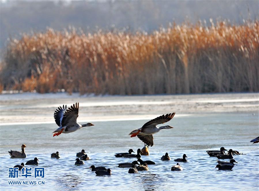 水鳥飛翔在拉魯濕地上空(1月7日攝)。入冬以來,位于拉薩城邊的拉魯濕地國家級自然保護區(qū)候鳥增多,斑頭雁、赤麻鴨、野鴨等數(shù)十種候鳥在這里過冬。拉魯濕地國家級自然保護區(qū)海拔3600多米,總面積12.64平方公里,是中國海拔最高、面積最大的城市天然濕地,被譽為“拉薩之肺”。新華社記者 張汝鋒 攝