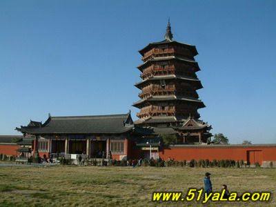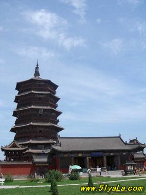 應縣木塔佛宮寺釋迦塔位于山西省應縣城內西北佛宮寺內。俗稱應縣木塔。塔總高67.31米,是我國現(xiàn)存時代最早的木結構高層建筑.佛宮寺釋迦塔建于后晉天福年間,遼清寧二年(1056年)重修。