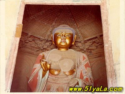 走進第一層塔的南門,迎面便是高約10米的釋迦塑像。頂部有精美華麗的藻井。內槽的墻壁上,畫有六幅如來佛像,門洞兩側的墻壁上,也繪有金剛、天王、弟子等壁畫。壁畫中最引人注目的是內槽門額壁板上的三個女供養(yǎng)人。畫面雖不大,但人物的體態(tài)勻稱,面容豐滿,神情安詳而虔誠,衣帶似被微風吹動,在表態(tài)中給人以動的感覺。畫面的色彩至今仍很鮮艷,可能是后人在遼畫的基礎上重新描飾的。