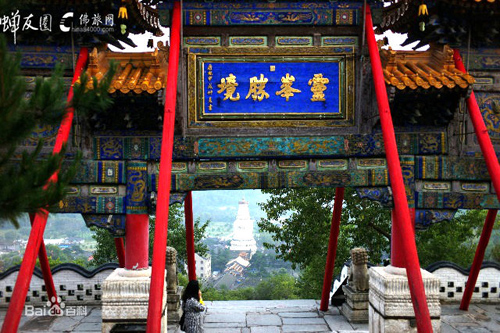 沿一百零八級(jí)石階登高,按照佛家的說(shuō)法,就把人間的一百零八種煩惱踩在腳下了。置身牌樓下,手撫門(mén)柱,回身四望,遠(yuǎn)處的山,山上的云,近處的清水河,雄壯多姿的寺廟建筑群,都收入眼中,深感“靈峰勝境”四個(gè)字點(diǎn)得妙。這里,是很好的登高覽勝的觀景點(diǎn)。一九四八年春,黨中央機(jī)關(guān)從延安開(kāi)赴河北省西柏坡,途中路過(guò)五臺(tái)山,陳毅同志作詩(shī)道:“本不游五臺(tái),迂道時(shí)日緊,至今有余歡,曾踏菩薩頂?!?/p>