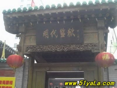 “蘇三監(jiān)獄”在今洪洞縣政府院內(nèi)西南,亦即明洪洞縣衙西南角。一進掛有“明代監(jiān)獄”匾額的大門,首先看到的便是蘇三的塑像,外院當(dāng)年監(jiān)獄的辦公場所,右邊的院落是普通監(jiān)牢,中間是過道,兩邊共有監(jiān)牢十余間,過道頂上布有鐵絲網(wǎng),網(wǎng)上掛有銅鈴,一有犯人企圖越墻逃跑,便會觸響銅鈴。過道的盡頭,正對的是獄卒的值班室,右面的墻上有獄神的供位,傳說當(dāng)年囚犯入獄都要參拜獄神,就是獄神下面的墻基處,有一小洞,是當(dāng)年運送尸體的出口,犯人在獄中病死或是被打死,是不能從大門抬出去的,只能從這個小洞拉出去。過道盡頭的左邊,便是死囚牢的大門,死囚牢雙門雙墻,門上畫有狴犴,狴犴是龍的兒子,長得卻象老虎,因此人們誤稱為“虎頭牢”,大約是因為龍生九子,子子不同,狴犴專門掌管刑獄,大門只有一米六高,所有進入死囚牢的人都要在狴犴像前低頭,顯示對法律的敬畏。進了門洞,里面還有一道門,而這兩道門卻是一扇從右開,一扇從左開,不明就里的囚犯如果越獄,往往出了第一道門卻怎么也打不開第二道門,一個小小的改動就能起到拖延犯人越獄時間的作用,不能不佩服古人的智慧。進入死牢院,右面是一堵高墻,左面就是當(dāng)年關(guān)押蘇三的牢房,里面有蘇三的塑像。死囚院的中央還有當(dāng)年蘇三坐監(jiān)時洗衣的水井和石槽,井口留有一道道繩索磨下的印記,井口只有半尺多寬,這是為了防止死囚投井自殺。據(jù)說,右面的高墻里灌裝的都是流沙,如果犯人想要挖墻越獄,流沙便會從挖開的小口中源源不斷地流來,使其難以挖通圍墻。1964年我國著名考古學(xué)家王冶秋先生曾在洪洞考察確認,蘇三監(jiān)獄為我國罕見的明代監(jiān)獄,并題詩曰:“虎頭牢里羈紅妝,一曲攪亂臭水漿。王三公子今何在?此處空留丈八墻?!笔陝觼y期間,蘇三監(jiān)獄被拆毀。為了使“蘇三監(jiān)獄”這一僅存的明代監(jiān)獄得以保留,洪洞縣人民政府后做出了修復(fù)“明代蘇三監(jiān)獄”的決定。修復(fù)事宜于1984年5月開始,同年10月竣工。