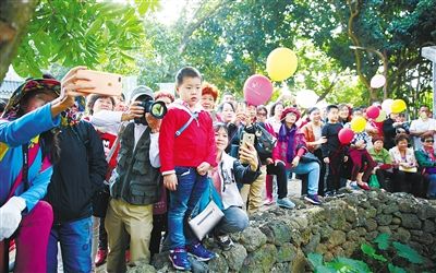 近日,在??邶埲A區(qū)新坡鎮(zhèn)斌騰村,游客排隊(duì)觀看特色表演,現(xiàn)場井然有序。