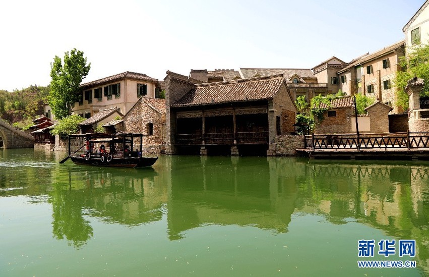 游客泛舟山水間享受古北水鎮(zhèn)自然之美。王晗攝