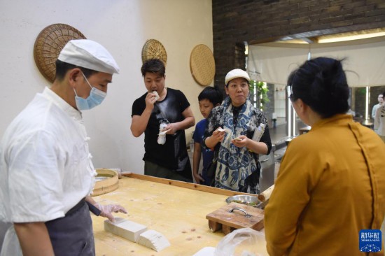 7月11日,游客在穆溝古村品嘗特產(chǎn)“阜寧大糕”。 位于江蘇阜寧的穆溝古村是座具有600多年歷史的自然村落,村域面積4000畝左右,村莊古樸風(fēng)貌保存較好。2020年底,當(dāng)?shù)貨Q定按照“修舊如舊”的原則對穆溝古村實施改造,既讓農(nóng)民的居住條件得到改善,又使古村整體形象得到升級;同時,古村引入多種傳統(tǒng)業(yè)態(tài)和現(xiàn)代文創(chuàng)產(chǎn)品,吸引眾多游客前來游玩體驗。 新華社記者 黃曉勇 攝 (責(zé)任編輯:梁艷) |