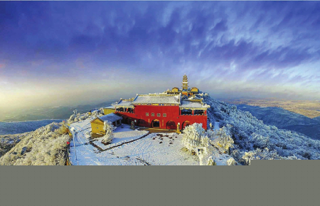 待紅葉褪盡,人祖山就進入蕭瑟之冬了。瑞雪飄滿人祖山的溝溝坎坎時,最愜意的事情就是上山看雪景。驟雪初霽,站立于山頭,世界是一種相對的靜態(tài)。潔白的雪把冬日里沒能驅(qū)散寒意的太陽襯得更高更亮。在陽光照射下,人祖山的天空是透徹明凈的藍,逾越生命,穿越歲月,闖入銀裝素裹的世界。放眼望去,漫山的青松、紅梅與白雪形成紅綠白相間的美麗畫面,令人陶醉。
