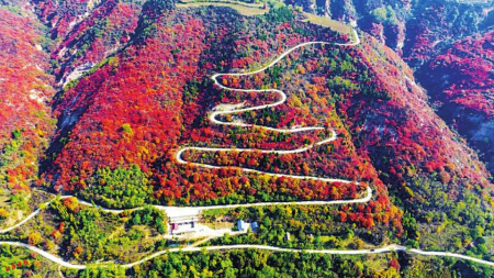 寒露過后,隨著秋風(fēng)一場連一場地吹過,馬泉溝的樹葉由綠變紅,迎來了它一年中的高光時刻。馬泉溝位于平陸縣三門鎮(zhèn)東部的小山村,距縣城50公里,因山路蜿蜒曲折,若驅(qū)車從縣城前往,需要近兩個小時。但當(dāng)你看到攝人心魄的美景時,會覺得此行值得!馬泉溝村村域面積30000余畝,溝岔縱橫,山清水秀,森林覆蓋率達82.4%。萬畝黃櫨,是大自然給馬泉溝村的饋贈。在100余種的野生灌木和保護林,主要以黃櫨灌木為主,其次還有白皮松、黃連木、山楓樹等七八種林木,在時間的浸染下,造就了馬泉溝一望無際的紅。