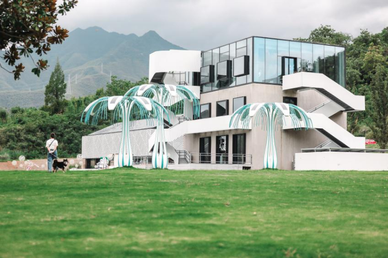 為積極貫徹“兩山+雙碳”理念,余村創(chuàng)建了中國首個全要素“零碳鄉(xiāng)村”。由化工廠改造的新潮建筑“余村印象”落地建成,它可以依靠可再生能源光伏發(fā)電系統(tǒng)進行碳抵消,是名副其實的零碳建筑。