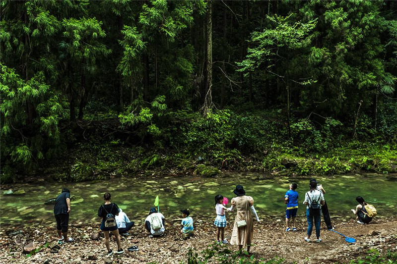 黃石寨是個“空中孤島”,所以沒有環(huán)保車,只能索道原路下山,下山不遠(yuǎn)就是金鞭溪的入口。金鞭溪全長7.5公里,是條絕佳森林伴溪水的徒步路線,只做徒步可以在兩小時完成,途中如果休息、觀景,一般三小時可以走到另一出口——水繞四門,這里就又有環(huán)保車了,下一站就是山下的另一景點“十里畫廊”,可以小火車可以徒步,“畫廊”并不長,想拍照還是徒步比較好。