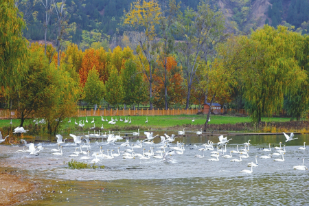 運城的冬天,吸引了大天鵝、火烈鳥、反嘴鷸、蒼鷺、棕頭鷗、灰鶴、黑翅長腳鷸等近200種野生鳥類。當成群的大天鵝從遙遠的西伯利亞飛抵運城,在運城鹽湖景區(qū)、平陸大天鵝景區(qū)、芮城圣天湖景區(qū),均呈現(xiàn)出“萬頃河水碧、一池雪花白”的壯觀景象,三大天鵝觀賞景區(qū)同步開放。成千上萬只白天鵝在黃河岸畔或自在游弋,或追逐戲水,或引吭高歌,為冬日的黃河流域運城段增添了悠然靈動,讓人在此如臨仙境,流連忘返。為方便廣大游客參觀游覽,運城免費開放冬觀天鵝專線城景通,期間周六開設平陸專線,途經鹽湖景區(qū)、周倉文化園、平陸大天鵝景區(qū)等,周日開設芮城專線,途經鹽湖景區(qū)、圣天湖、永樂宮、廣仁王廟、城隍廟等,法定節(jié)假日兩條線同時運行,可在運城高鐵站、北郊億適家超市、運城火車站等市區(qū)公交站點乘坐。