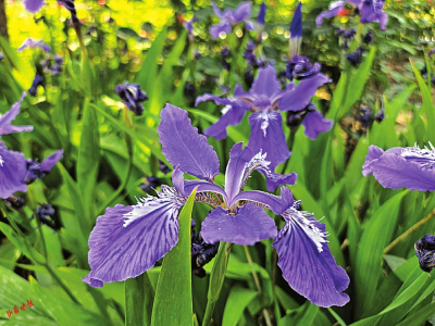鳶尾花因花瓣形如鳶鳥尾巴而得名,是一種由三片萼片、三片花瓣構(gòu)成的花朵。葉片碧綠青翠,枝葉生長茂盛;在春夏季盛開時(shí)花朵藍(lán)紫色,淡雅清香,花形優(yōu)美大而奇特,宛若翩翩彩蝶,橢圓形果實(shí)猶如小青棗。作為庭園栽植的重要花卉,碑林公園蜿蜒曲折的步道兩旁種滿了這美麗的蝴蝶花。鳶尾花主要色彩為藍(lán)紫色,有“藍(lán)色妖姬”的美譽(yù)。