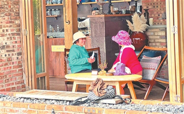 銀發(fā)游客在云南保山市隆陽區(qū)新寨村聊天。