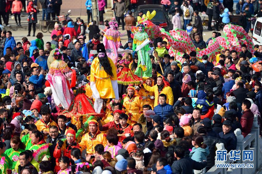 2月21日,社火隊(duì)在進(jìn)行巡游拜年。當(dāng)日,有著千年歷史的傳統(tǒng)村落——山東省章丘市三德范村組織31個(gè)社火隊(duì)舉行社火巡游拜年活動(dòng),在元宵佳節(jié)來(lái)臨之際為鄉(xiāng)親們送祝福。新華社記者 郭緒雷攝
