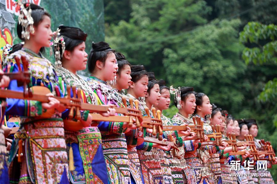 5月3日,貴州省首批魅力侗寨——榕江縣烏公侗寨歡度傳統(tǒng)的竹米節(jié),重溫侗民遠(yuǎn)古農(nóng)耕風(fēng)情。竹米節(jié)也叫吃竹筍飯,在每年谷雨至立夏期間竹筍生長(zhǎng)的時(shí)候,侗族群眾采摘斑竹筍,把糯米灌進(jìn)筍筒煮熟食用。這樣既能保持米飯的原味,又有竹筍的清香,并且還方便攜帶至坡上田間地頭食用。久而久之,侗族人每到春夏之交的農(nóng)耕時(shí)節(jié)都會(huì)過(guò)竹米節(jié),殺豬宰羊祭祀侗族祖先,唱歌跳舞祈求五谷豐登。新華社發(fā)(楊成利 攝)