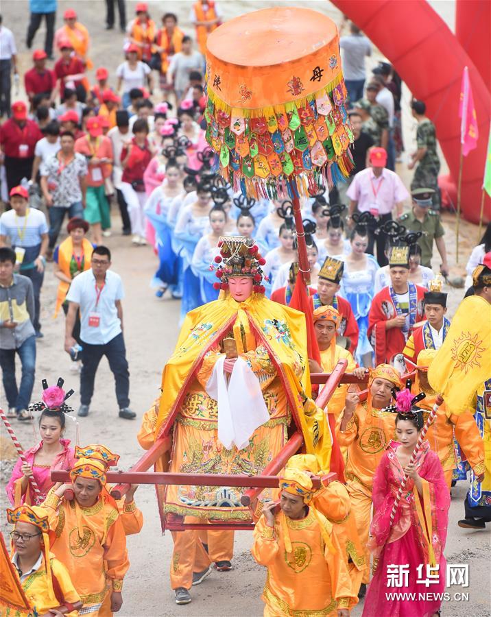 6月13日,福建省寧德市古田縣舉行臨水夫人祭祀大典,為海峽論壇的重要組成部分——陳靖姑文化節(jié)拉開序幕。本屆文化節(jié)以“臨水緣·兩岸情”為主題,港澳臺及內(nèi)地近千名信眾共同參加。作為國家級非物質(zhì)文化遺產(chǎn)“陳靖姑信俗文化”的發(fā)祥地,福建省古田縣充分以陳靖姑信俗文化為紐帶,通過不斷加深對外文化交流與合作,對推動兩岸關(guān)系和平發(fā)展、我國與海絲沿線國家民間交流起到了積極作用。陳靖姑被譽為“婦女兒童保護神”,在世界各地信眾已逾億人。新華社記者 宋為偉 攝