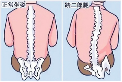 蹺二郎腿首先影響的就是脊柱,尤其是腰椎部分。蹺二郎腿時,脊椎要配合單腳來維持平衡,長時間的受力會讓脊椎發(fā)生變形、扭曲。蹺二郎腿時,腰部會往后突出,這也是讓我們覺得“放松”的原因之一。其實對腰椎最健康的姿勢是“挺直腰板”,如果后凸,腰椎受力會以幾何倍數(shù)增加。長此以往,對腰椎影響很大,會增加腰椎間盤突出的概率。