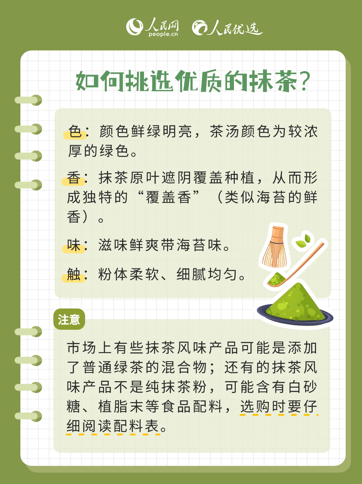 抹茶因香氣獨特、口感層次豐富、色澤翠綠悅目,受到很多人的喜愛。市面上抹茶冰淇淋、抹茶蛋糕、抹茶飲品等各種抹茶風(fēng)味制品層出不窮。抹茶到底是什么茶?選購抹茶應(yīng)留意什么?本期《人民優(yōu)選來了》,帶您讀懂這抹綠。