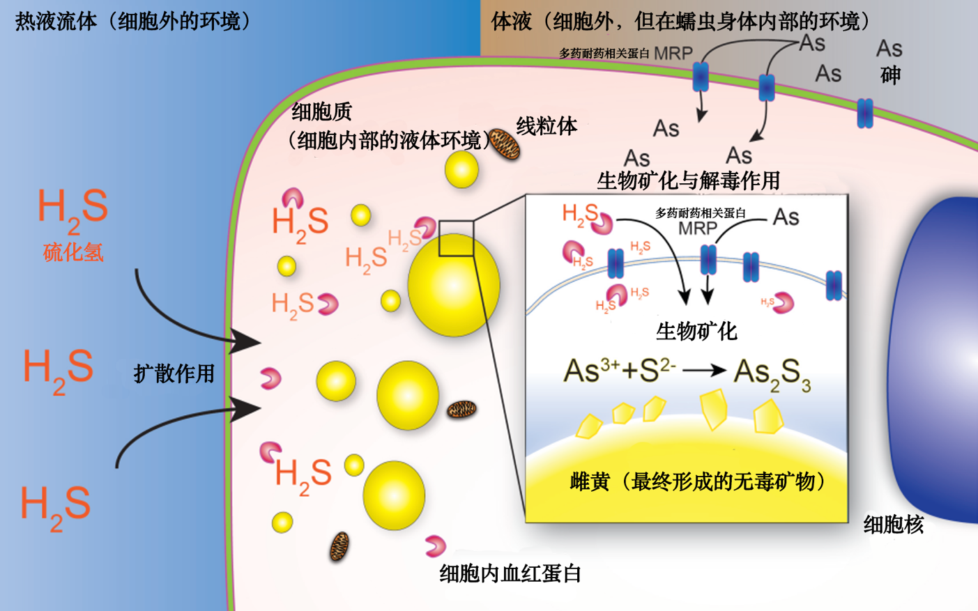 2025年8月,中國(guó)科學(xué)院海洋研究所的研究團(tuán)隊(duì)在《PLOS生物學(xué)》(PLOS Biology)上發(fā)表了一項(xiàng)驚人發(fā)現(xiàn):赫斯帕拉爾文氏蠕蟲(chóng)通過(guò)一種前所未有的“以毒攻毒”機(jī)制,將兩種致命毒素——砷和硫化氫——結(jié)合成無(wú)毒的雌黃礦物,實(shí)現(xiàn)了生物界首個(gè)已知的解毒性生物礦化。