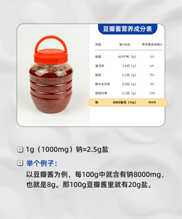 日常飲食要控鹽。有些食品嘗起來并不咸,但含鹽量卻相當(dāng)高,因?yàn)楹胁簧佟半[形鹽”。食鹽是氯化鈉的結(jié)晶,購買食品時(shí),標(biāo)簽上的營養(yǎng)成分表對鈉含量有明確的標(biāo)識。所以想要識別“隱形鹽”,可以看標(biāo)簽上鈉的含量。(來源:科普中國)
