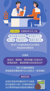 記者從國家醫(yī)保局了解到,12月1日,全國醫(yī)保正式上線慢性阻塞性肺疾病、類風濕關節(jié)炎、冠心病、病毒性肝炎、強直性脊柱炎等5種門診慢特病相關治療費用跨省直接結(jié)算服務。