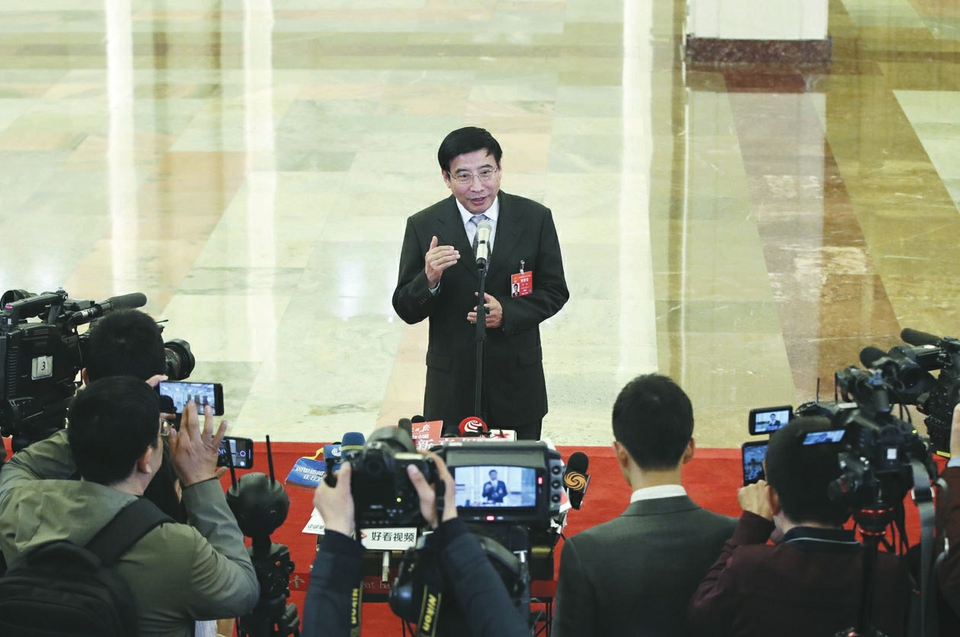 3月5日上午,十三屆全國人大二次會議開幕會結(jié)束后,第二場“部長通道”舉行。銀保監(jiān)會主席郭樹清、商務(wù)部部長鐘山、交通運(yùn)輸部部長李小鵬、工信部部長苗圩、海關(guān)總署署長倪岳峰、國家市場監(jiān)管總局局長張茅、農(nóng)業(yè)農(nóng)村部部長韓長賦、國臺辦主任劉結(jié)一先后亮相,回應(yīng)熱點(diǎn)問題。