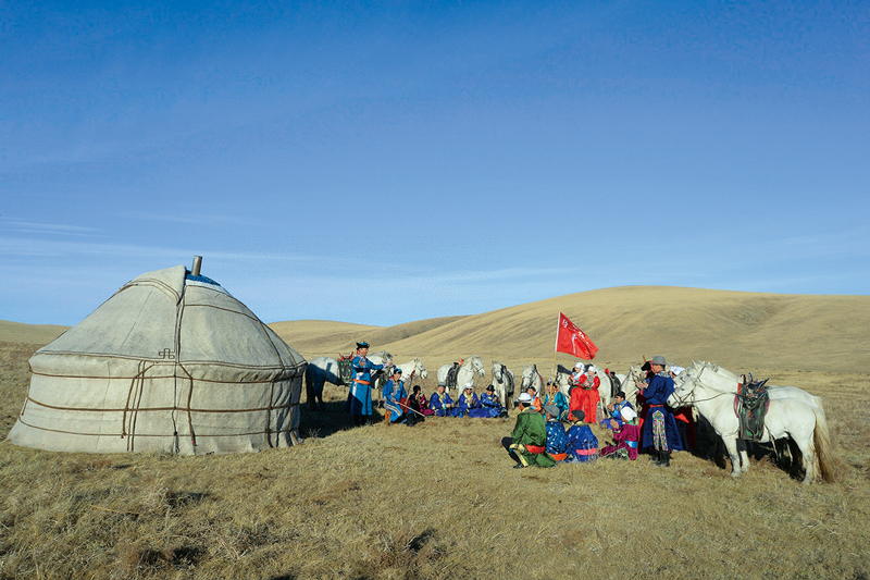 2017年,內(nèi)蒙古自治區(qū)蘇尼特右旗烏蘭牧騎隊(duì)員們聯(lián)名給習(xí)近平總書(shū)記寫(xiě)信,表達(dá)了為繁榮發(fā)展社會(huì)主義文藝事業(yè)作貢獻(xiàn)的決心。2017年11月21日,習(xí)近平總書(shū)記給他們回信,勉勵(lì)他們?cè)钗滞粒?wù)牧民群眾,推動(dòng)文藝創(chuàng)新,努力創(chuàng)作更多接地氣、傳得開(kāi)、留得下的優(yōu)秀作品,永遠(yuǎn)做草原上的“紅色文藝輕騎兵”。圖為2018年11月20日,烏蘭牧騎隊(duì)員們又一次奔赴牧區(qū)為牧民們表演節(jié)目。 新華社發(fā) 東哈達(dá)/攝