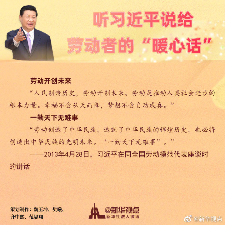 “幸福是奮斗出來(lái)的”,奮斗是勞動(dòng)者最美的姿態(tài)。今天,當(dāng)我們?cè)跒槊恳晃粍趧?dòng)者點(diǎn)贊之時(shí),一起來(lái)聽(tīng)聽(tīng)黨的十八大以來(lái)習(xí)近平總書(shū)記對(duì)勞動(dòng)者說(shuō)的那些暖心話。
