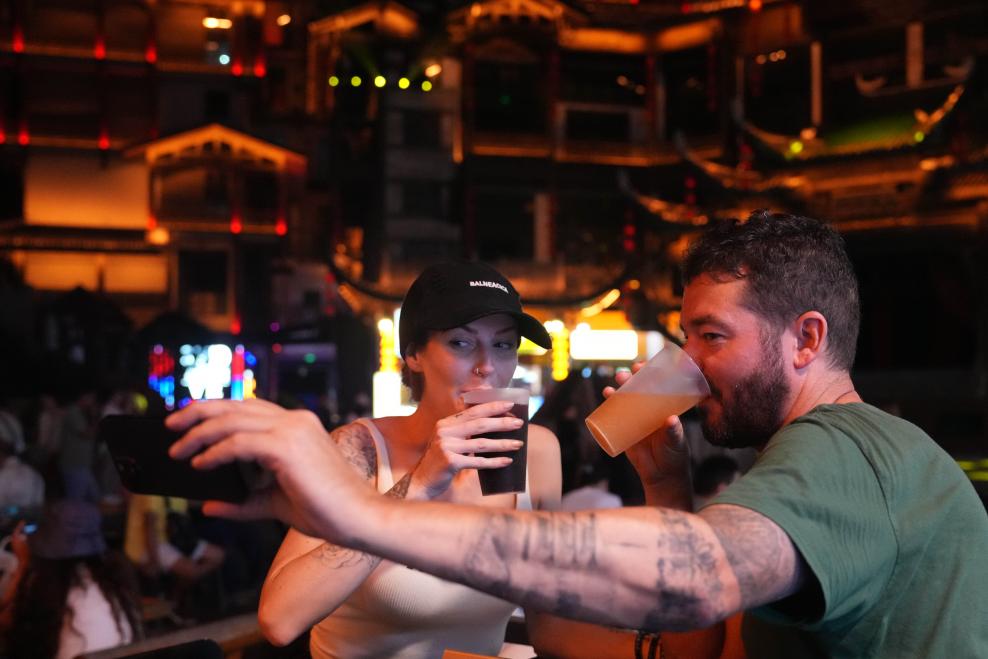 5月20日,澳大利亞游客在張家界市七十二奇樓景區(qū)合影。隨著一系列入境便利政策措施的實(shí)施,越來越多外國(guó)游客來到湖南張家界探尋山水人文之美。新華社記者 薛宇舸 攝