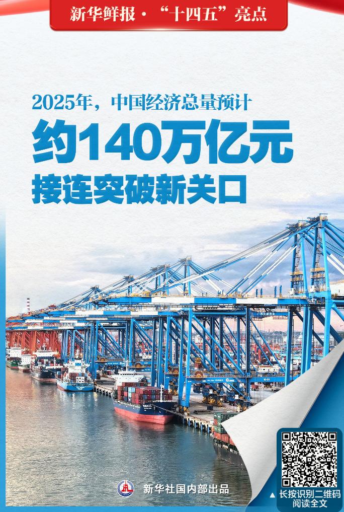 經(jīng)濟(jì)總量預(yù)計約140萬億元、研發(fā)人員總量全球第一、優(yōu)良天數(shù)占比達(dá)87.2%……這些硬核數(shù)據(jù)夠亮眼!新華社“新華鮮報”欄目11篇報道,帶你速覽“十四五”期間中國奮進(jìn)足跡,感受我國發(fā)展取得的重大成就,體味極不尋常、極不平凡的發(fā)展歷程。