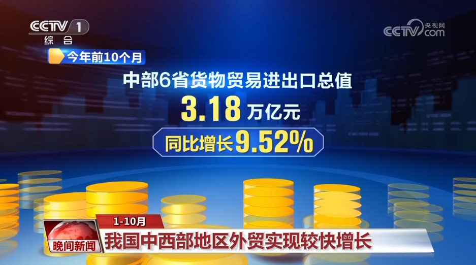 1—10月我國中西部地區(qū)外貿(mào)實現(xiàn)較快增長