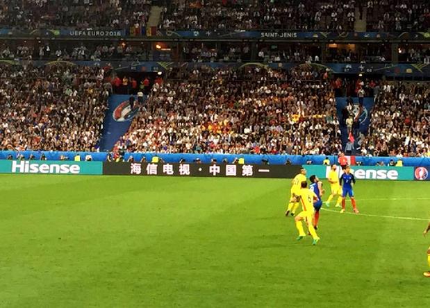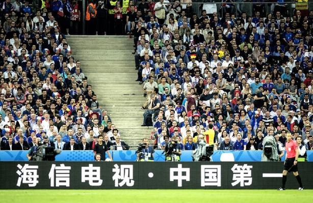 “海信電視,中國第一”!2016年6月10日,法國巴黎圣丹尼斯球場,隨著歐洲杯揭幕戰(zhàn)打響,中國品牌海信的廣告出現(xiàn)在全球球迷面前。這是歐洲杯56年來第一次迎來中國贊助商,海信的廣告也在未來1個月內(nèi)出現(xiàn)在全部51場歐洲杯比賽中。