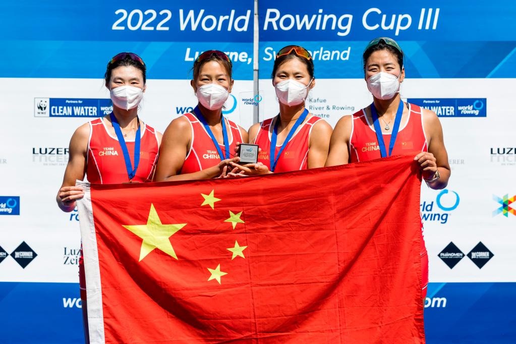 在盧塞恩站女子四人雙槳決賽中,由三名奧運(yùn)冠軍陳云霞、呂揚(yáng)、崔曉桐與小將魯詩雨組成的中國隊(duì)從開賽就確立了領(lǐng)先優(yōu)勢,最終以6分14秒68的成績奪冠。在此前的塞爾維亞貝爾格萊德站和波蘭波茲南站比賽中,中國隊(duì)分獲該項(xiàng)目銀牌和金牌,最終憑借積分優(yōu)勢獲得年度總冠軍。