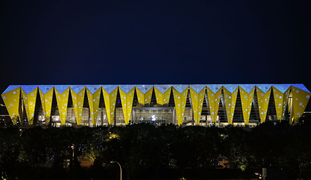 西安奧體中心游泳跳水館外景。新華社記者王曦攝