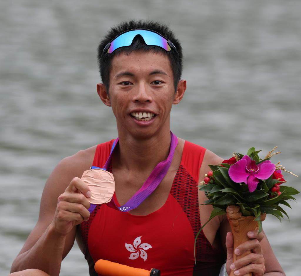 在男子單人雙槳決賽中,36歲的老將張亮蟬聯(lián)冠軍。張亮在出發(fā)后一“艇”當(dāng)先,1500米過后已領(lǐng)先第二名4秒96,雖然他在最后500米時速度有所下降,但依舊憑借著前半程巨大的領(lǐng)先優(yōu)勢,以6分57秒06強勢奪金。上屆亞運會該項目銅牌得主、日本選手荒川龍?zhí)@得亞軍,中國香港隊運動員趙顯臻摘得銅牌。