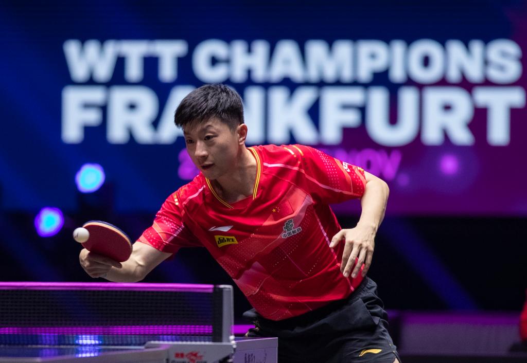 10月31日,馬龍在比賽中回球。新華社記者 張帆 攝