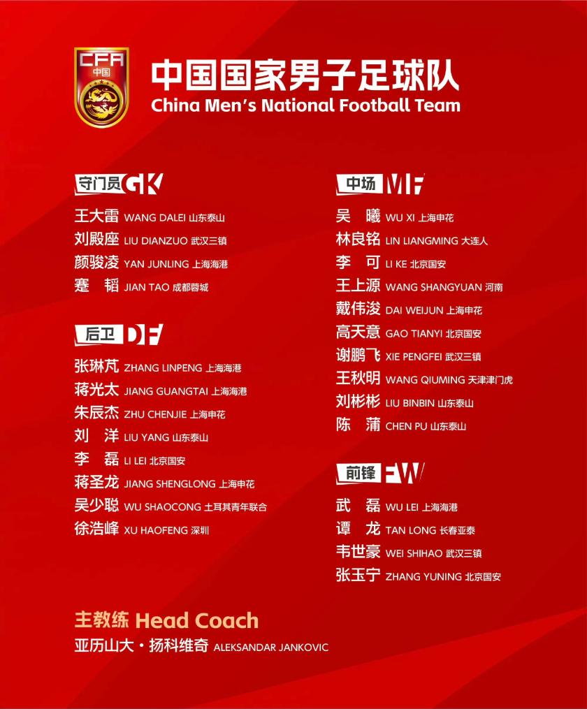 根據(jù)安排,由主教練揚科維奇帶領(lǐng)的中國男足將于12月17日至明年1月7日在上海、阿聯(lián)酋阿布扎比組織集訓,后赴卡塔爾多哈參加亞洲杯決賽階段賽事。