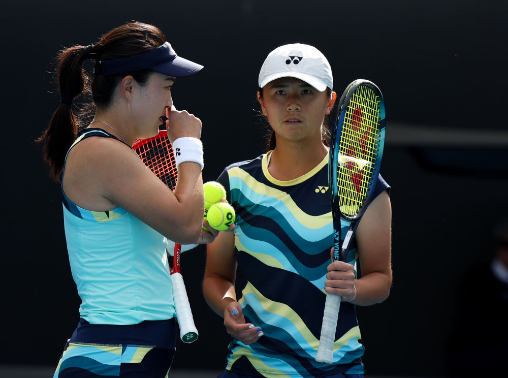 “海峽組合”朱琳/吳芳嫻以3:6、5:7不敵11號種子基切洛克/奧斯塔彭科,止步女雙第三輪。